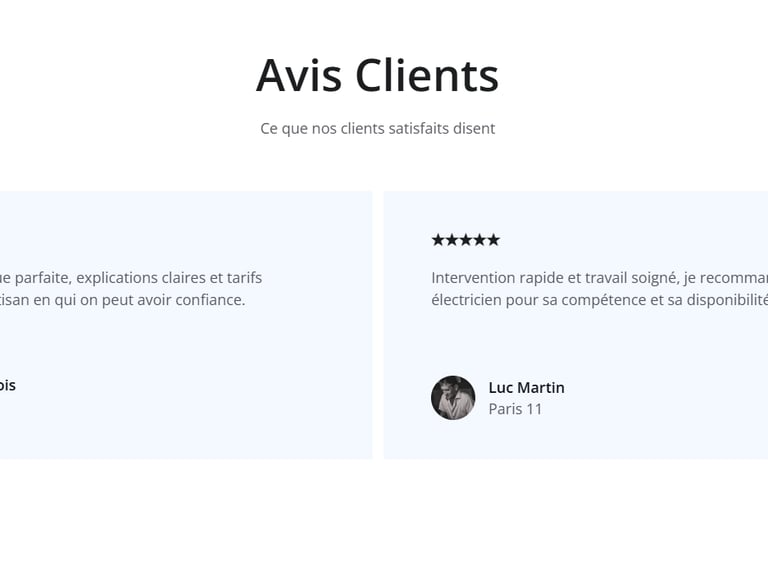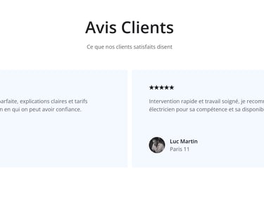 Site 3 à 5 pages pour présenter clairement vos services et avis clients.